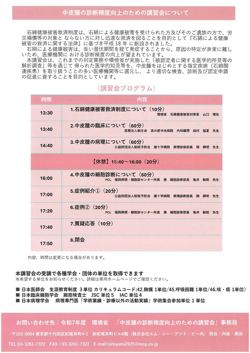 中皮腫の診断精度向上のための講習会