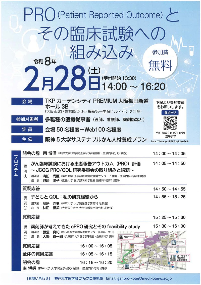 対 象:がん医療に携わる医師、薬剤師、看護師、理学療法士、作業療法士、栄養士、MSWなど