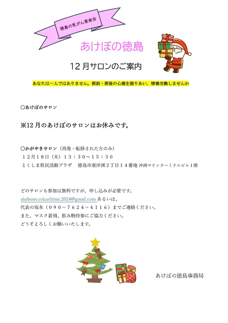 あなたは一人ではありません。術後・術前の心境を語りあい、情報交換しませんか
