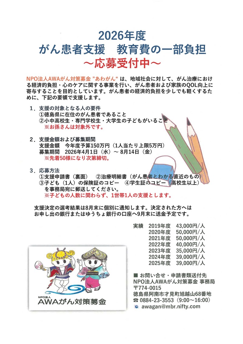 NPO法人AWAがん対策基金“あわがん”は、地域社会に対して、がん治療における